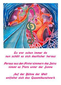 Poesie Viola Livera, B. 1 Jens Zygar, B. 2+3 Tuulia, B. 4 Josephine Seeger , B. 5 Ayam Am & Christian Noll, Körpermalerei Chi Tree Kai, Foto Martin Liebermann, B. 6 Musiker Thomas Tiefenbacher, Foto Branka Kadabra Kokol, B. 7 Jakob Klasik + Piti Lion + Carl Bke, B. 8+9 Foto Morgaine, B. 10-11 Gudrun Wunderlich, B. 12 Supriyati, B. 13+14 Viola Livera, © by the artists, Hamburg 2017-2024, Bestellungen